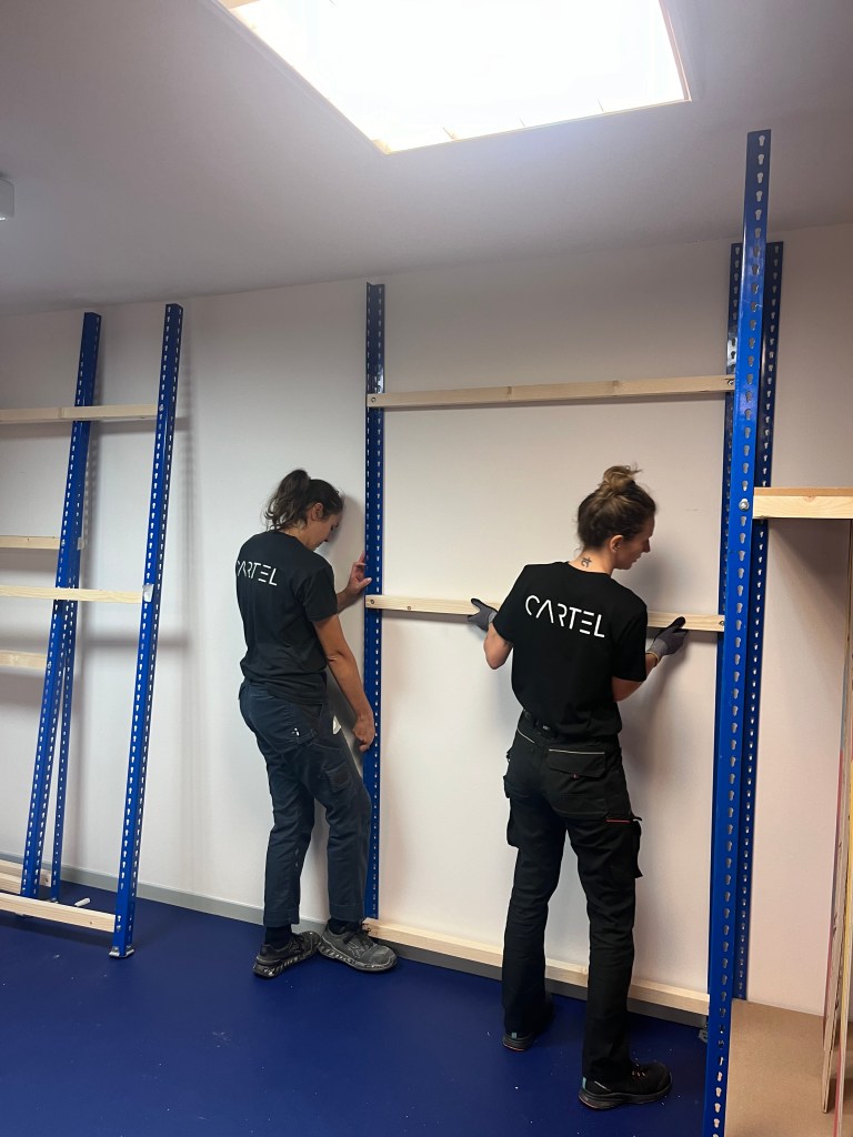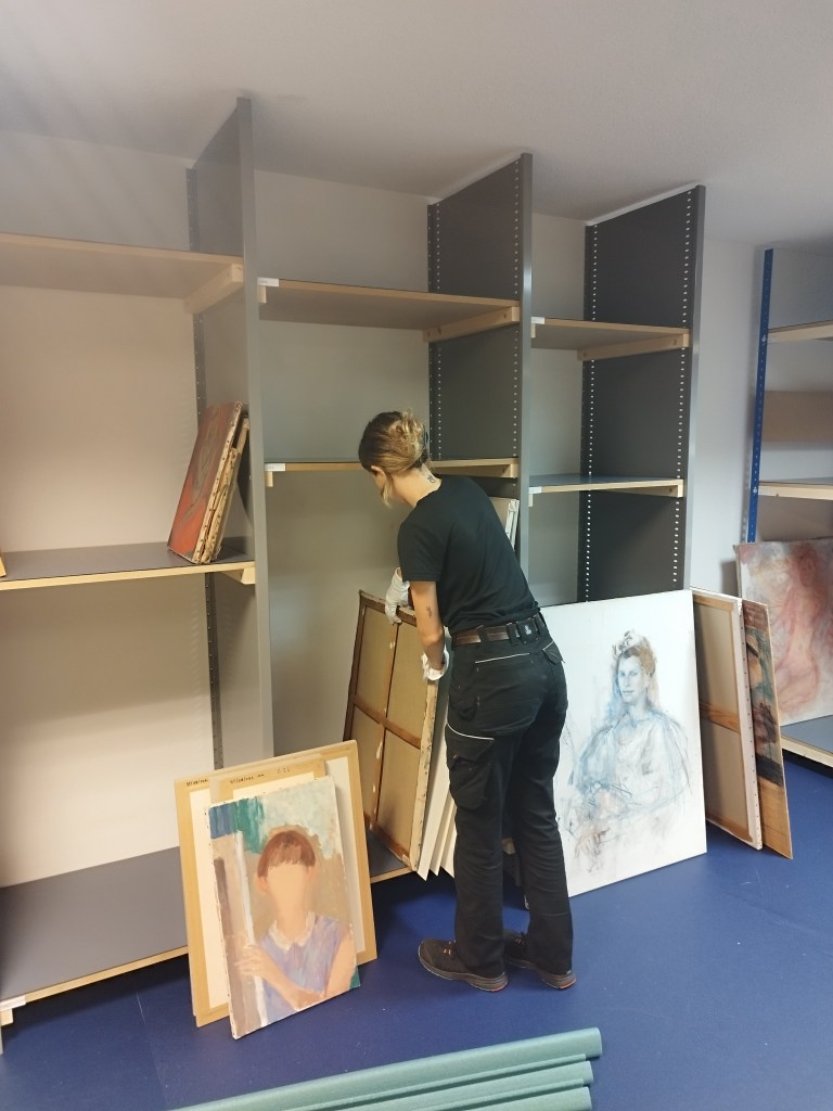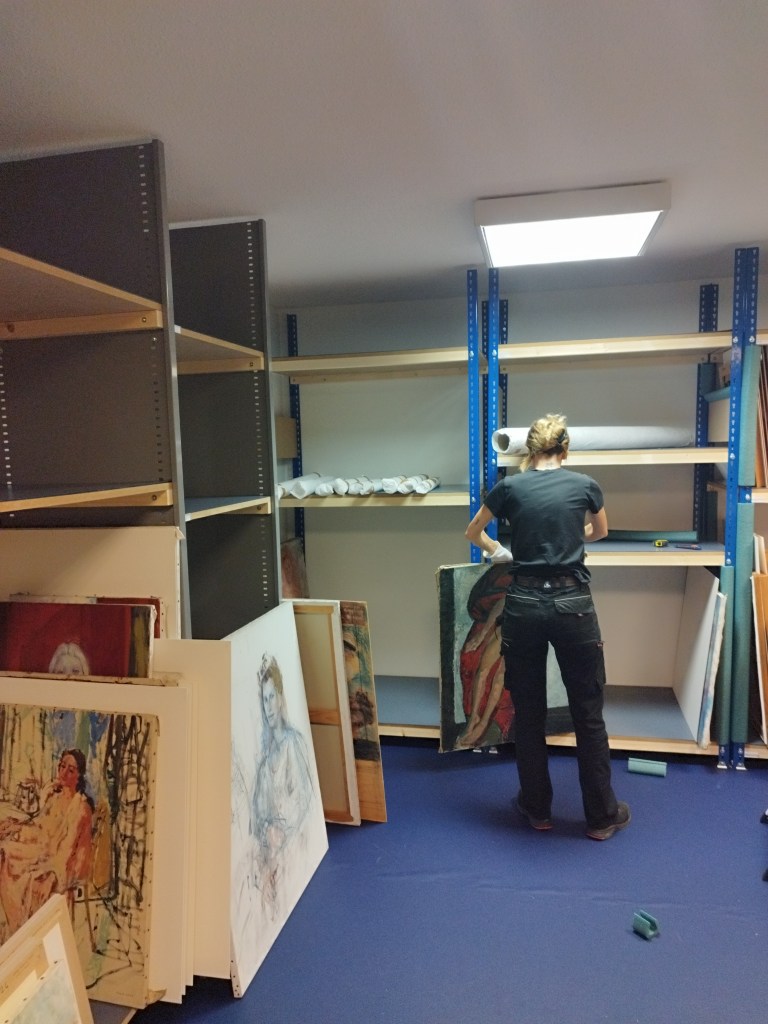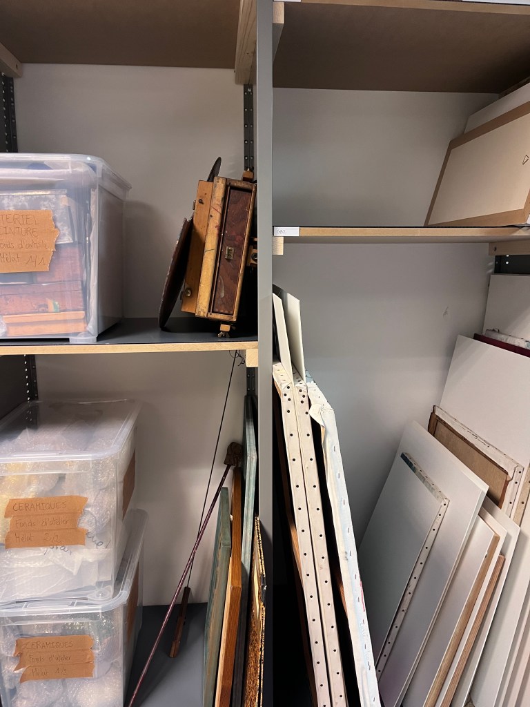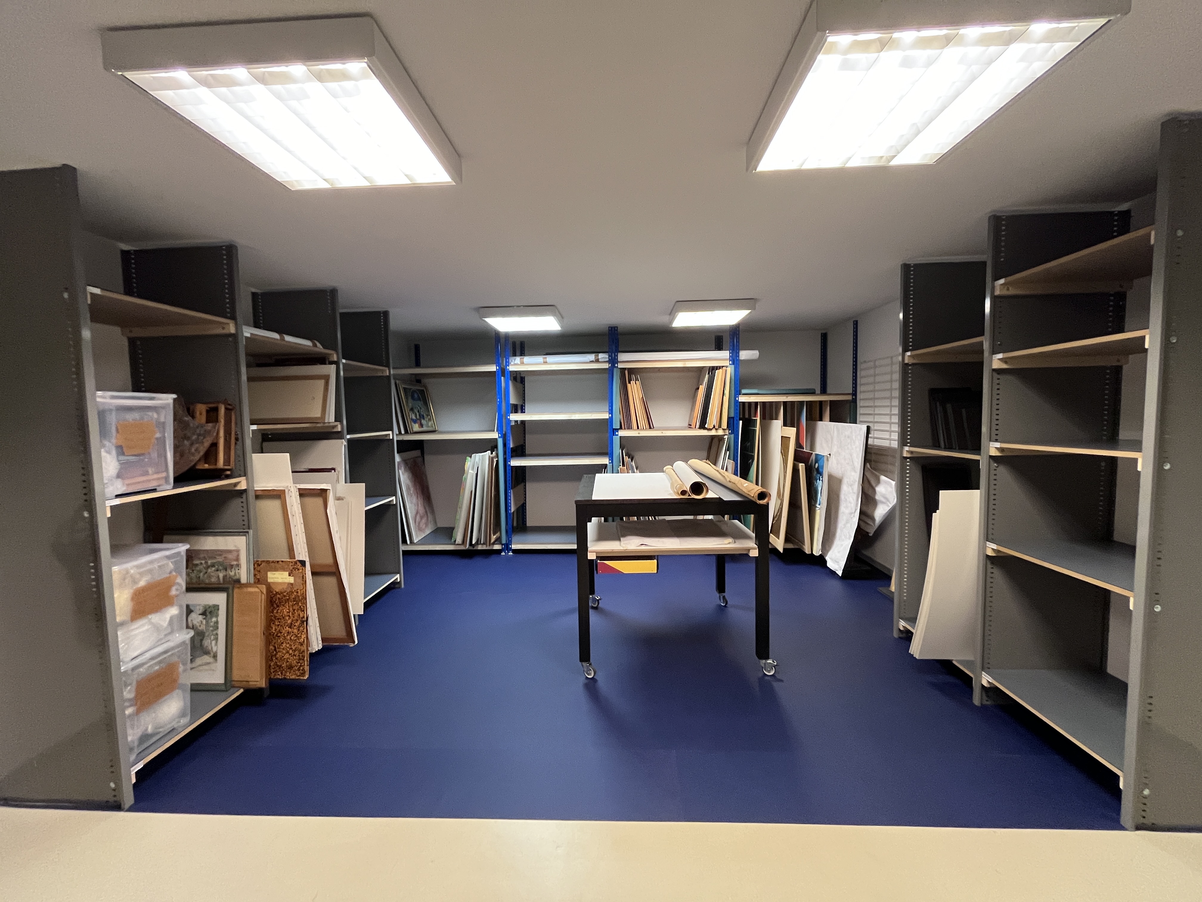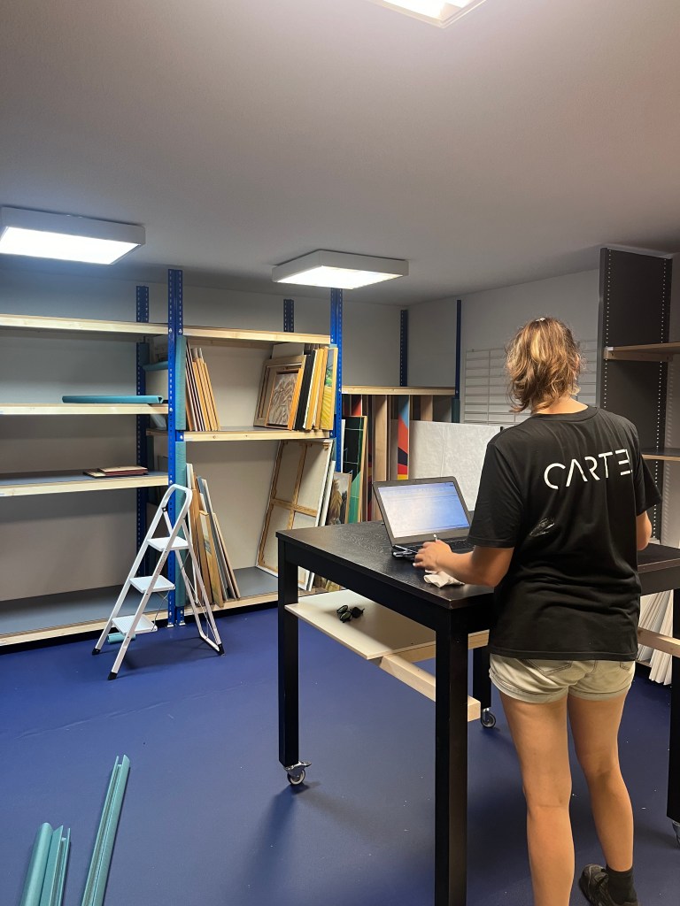 Pour cette mission l’équipe de Cartel a déplacé toutes les oeuvres de la réserve, vidé l’espace et les rangements existants et réinstallé des rangements sur mesure. L’agencement de la réserve a été conçu avec une connaissance précise de la collection et des besoins de la responsable des collections.